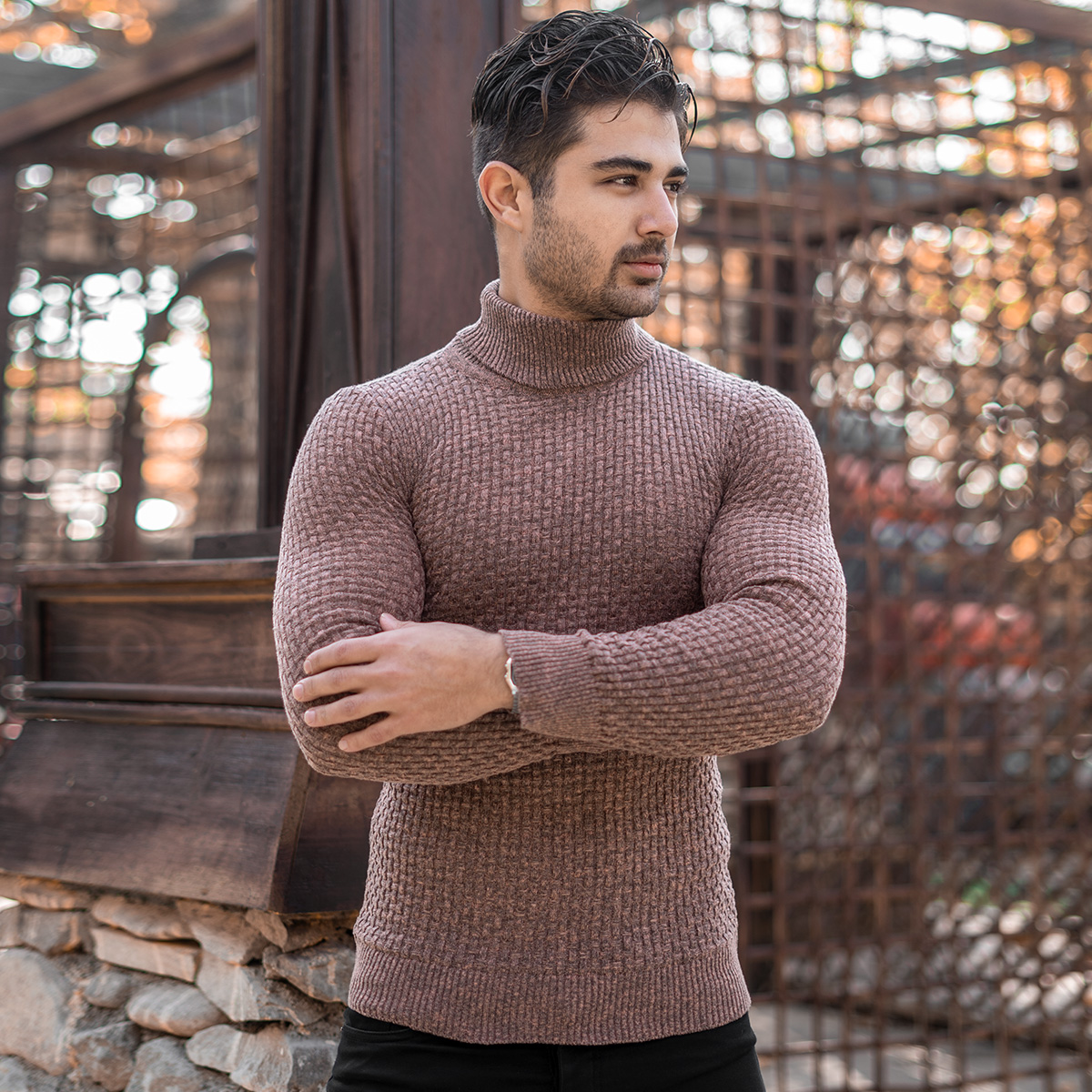 پلیور یقه اسکی مردانه قهوه ای مدل Oktav